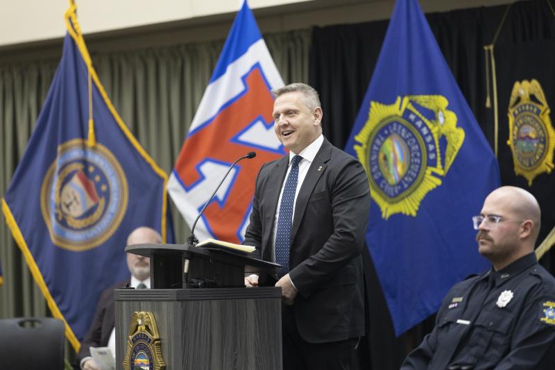 The ceremony opened with remarks from Police Instructor Senior and Class Coordinator Josh Long, who proudly introduced the 349th Basic Training Class. Senator Jerry Moran followed, offering encouragement and perspective on the significance of the law enforcement profession.